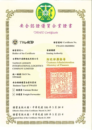為與國際接軌、順應世界潮流及符合全球貿易安全與便捷之標準,於2017年3月取得安全認證優質企業(AEO)證書。